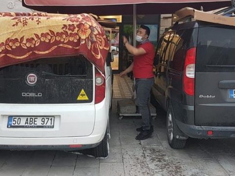 Meteoroloji Genel Müdürlüğü’nün Ürgüp’te dolu yağabileceği uyarılarının ardından bölge sakinleri, araçlarını korumak için önlem almaya başladı …